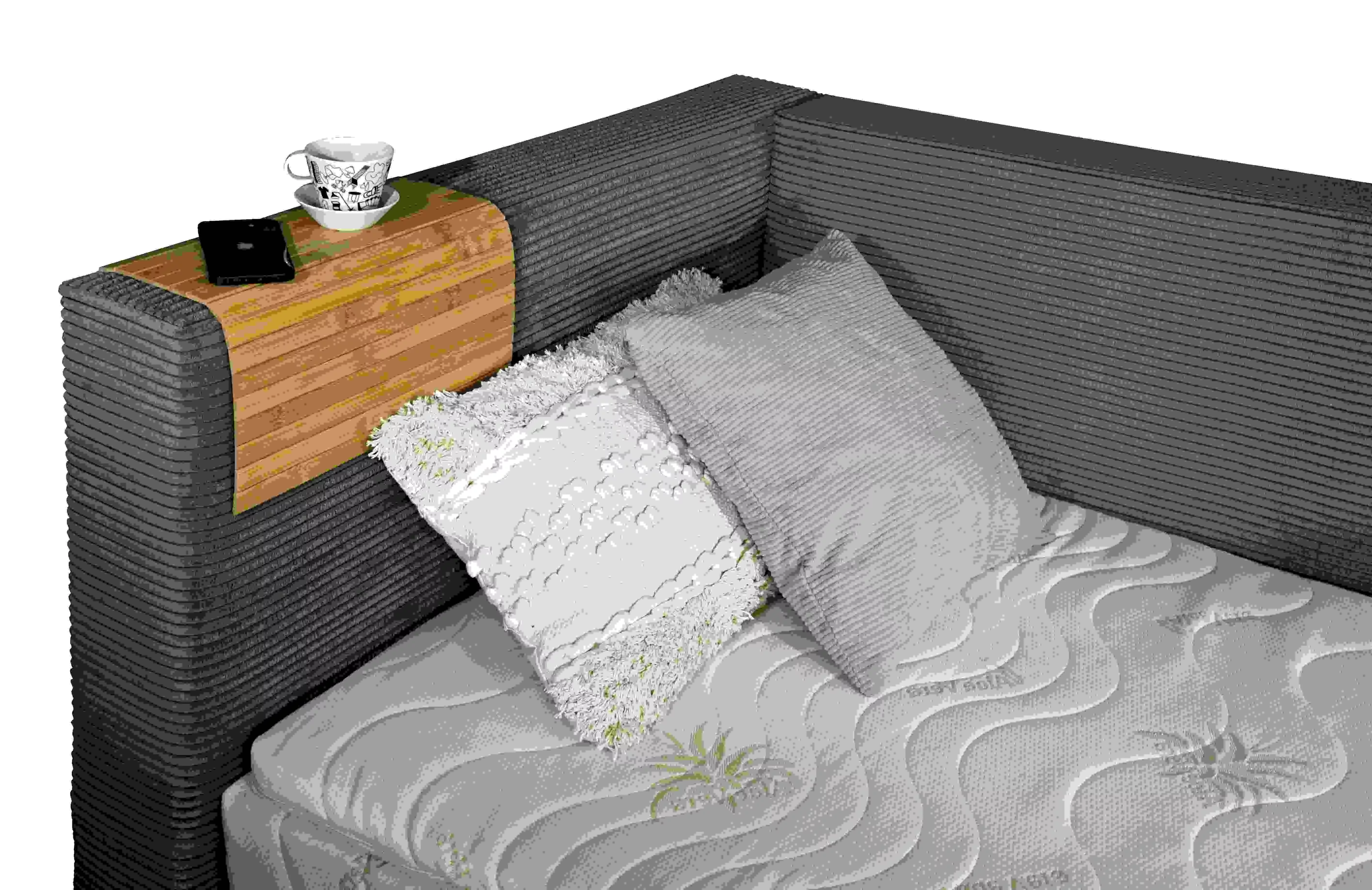 Posteľ obsahuje lamelový smrekový rošt s nastavovaním tuhosti. Rošt je úložným priestorom spojený pružinovým zdvíhacím mechanizmom pre pohodlný prístup.