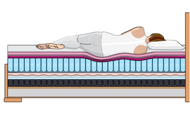 - Pružinová vložka 190x75x8 cm s drôtom o sile 2,2 mm. Navrchu a po obvode pružinovej vložky je použitý polyuretán. Proti pretlačeniu pružín je použitá technická textília s vpichovaným polypropylénovým vláknom Matrac je očalúnený v technickej látke a zmäkčený polyesterovým rúnom.