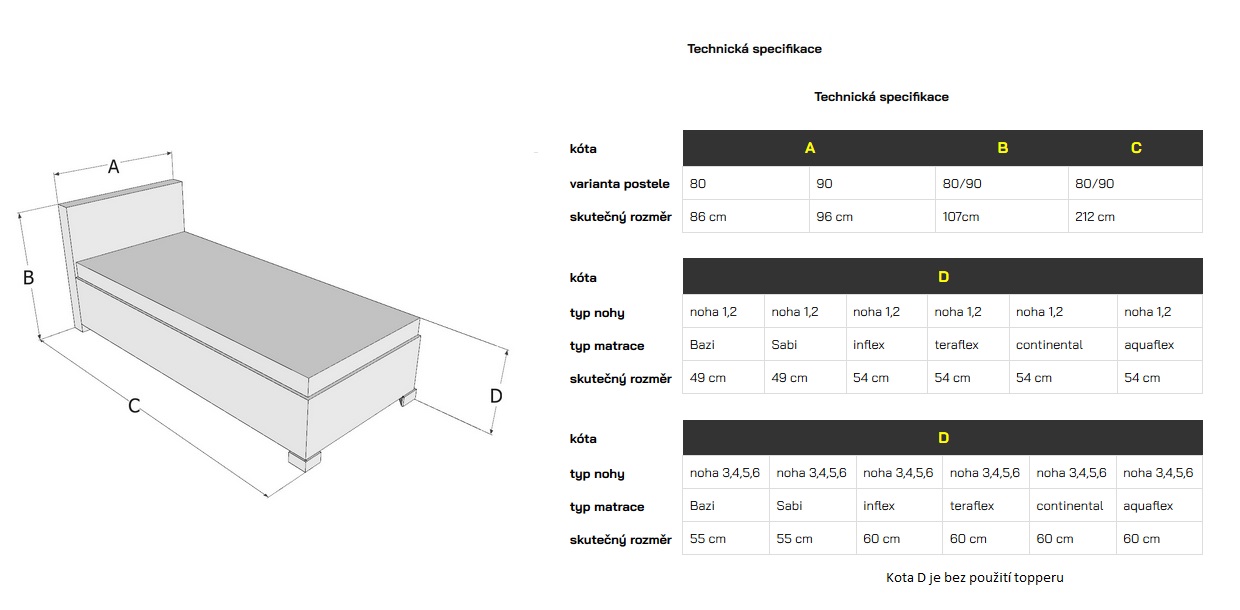 - Voľne ložný matrac podľa Vášho výberu