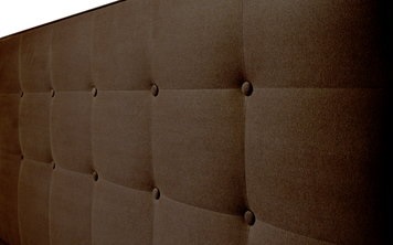 Čelo postele je zhotovené z DTD 16 mm. Hrúbka čela je opticky po obvode rozšírená pásikom MDF so šírkou 9 cm a hrúbkou 6 mm. Čelo je rozdelené na 18 obdĺžnikov, v priesečníkoch je osadené 10 ozdobných gombíkov s priemerom 25 mm. Je vystlané polyesterovým rúnom. Zadná časť je začistená netkanou čiernou textíliou.