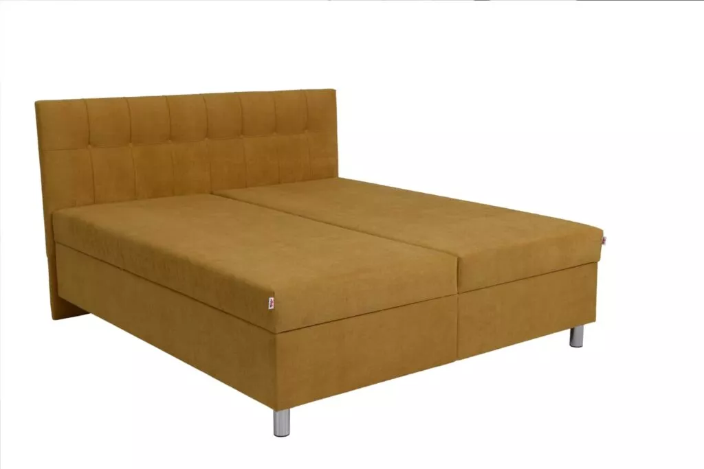 Čelo postele je ozvláštnené výrazným prešitím, čo podčiarkuje eleganciu lôžka. Stabilitu postele zaisťujú chrómové nohy s výškou 11cm. Výška ložnej plochy bez toppera je luxusných 58cm.