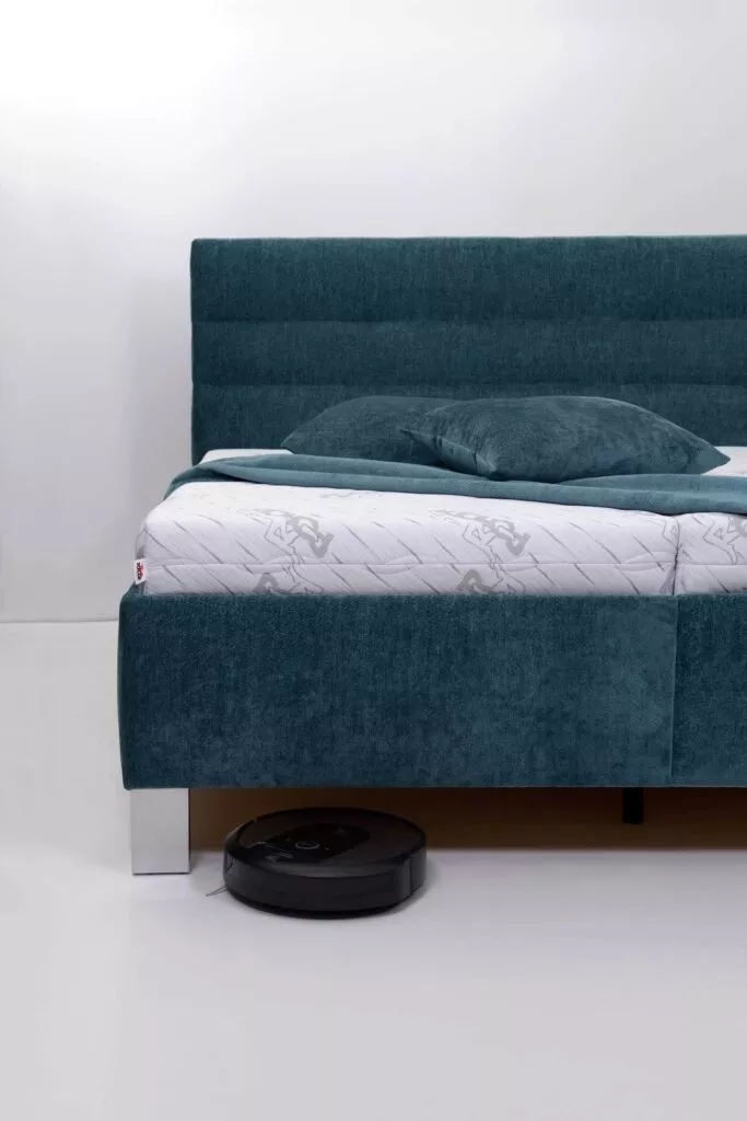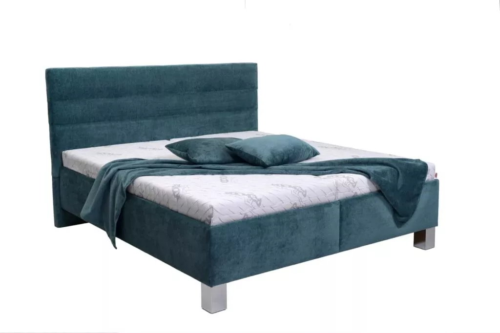 Čelo postele je ozvláštnené vodorovným prešitím, čo podčiarkuje eleganciu lôžka.