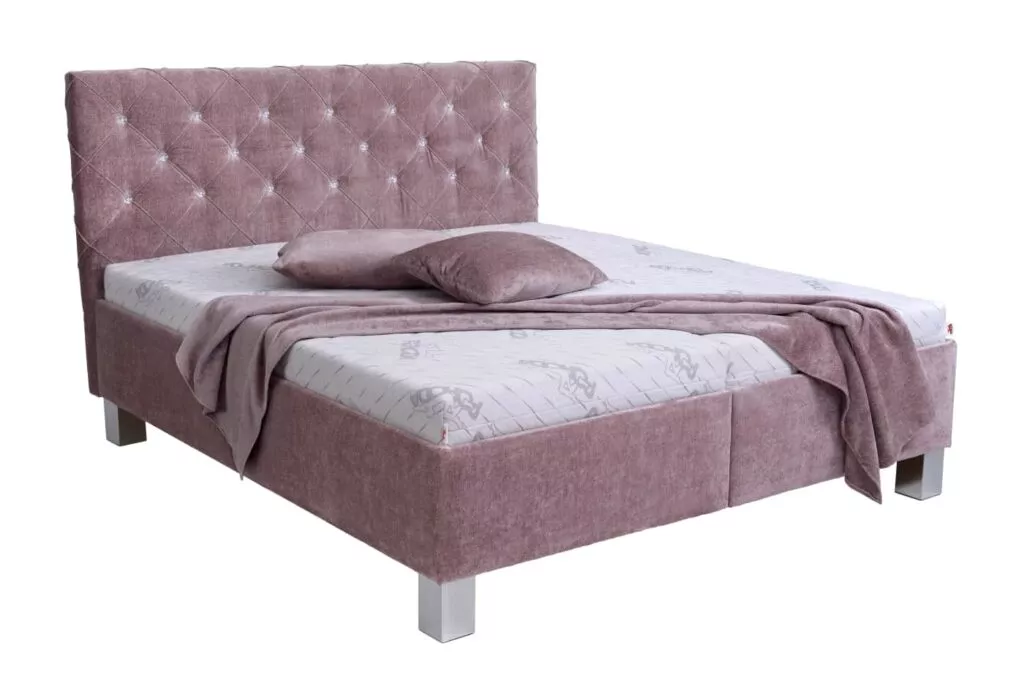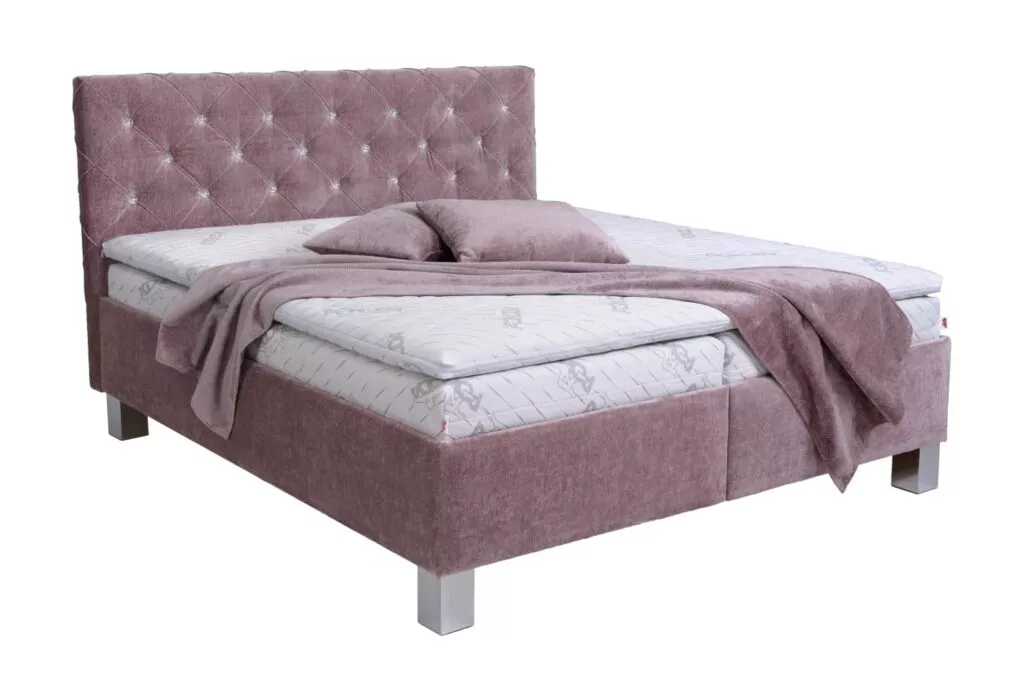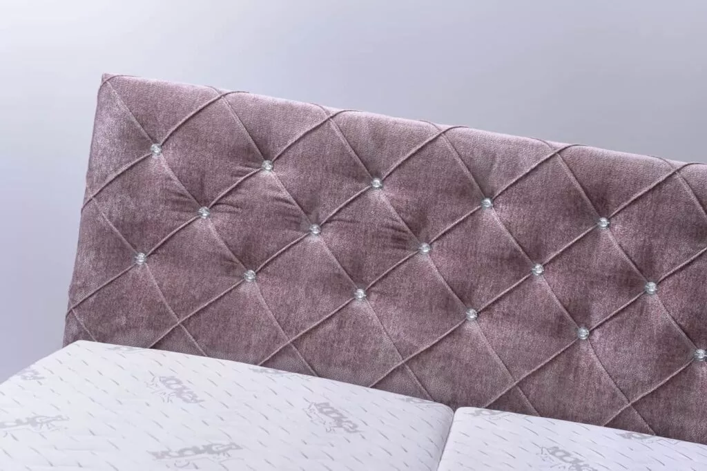 Čelo postele je jedinečné svojim výrazným prešívaním, ktoré je doplnené luxusnými kryštálovými gombíkmi.
