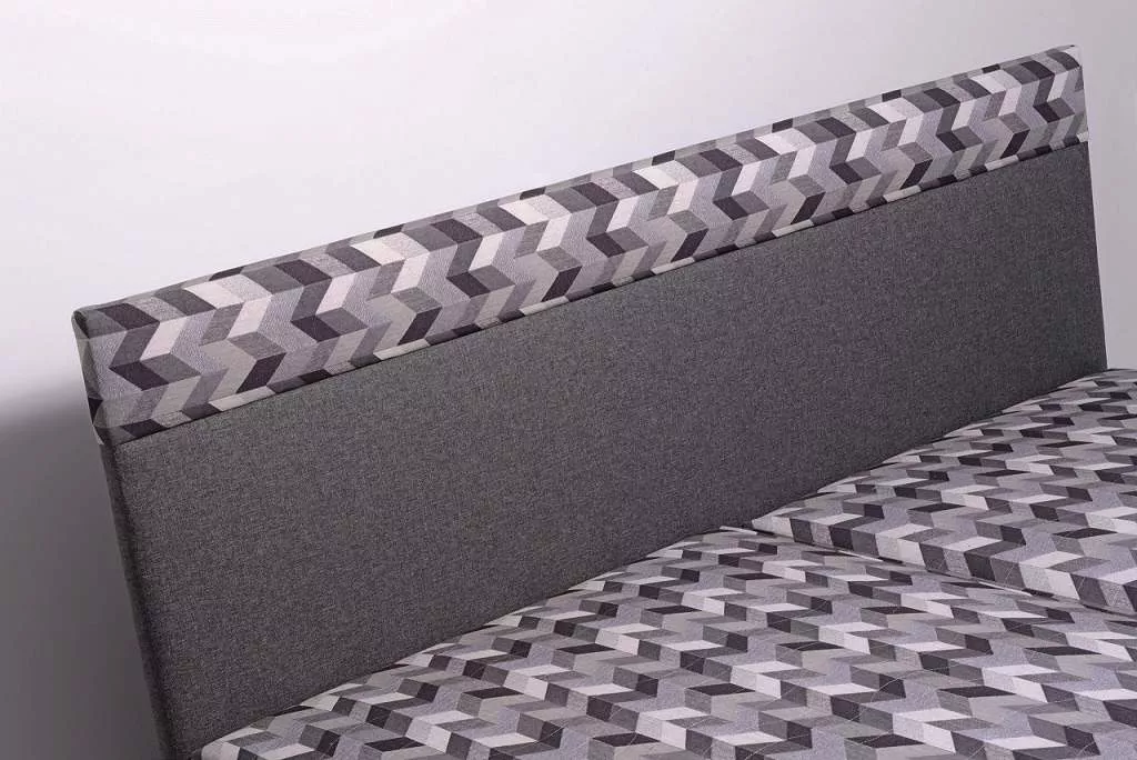 Čelá postele s veľmi zaujímavým prevedením zaujmú na prvý pohľad. Na úvodnom obrázku je posteľ v kombinácii látok Riviera 41 a Walker 5 (vzor).