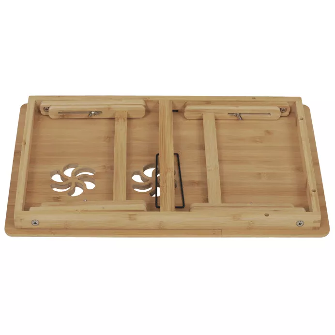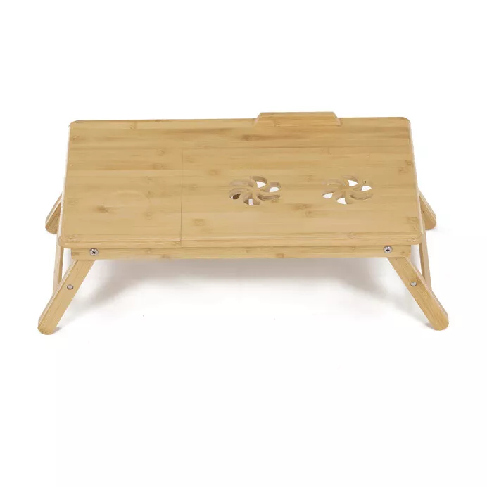 Praktický skladací stolík na notebook z masívneho bambusu spája funkčnosť s prírodným designom. Je vyrobený z pevného bambusového dreva v prírodnom odtieni, ktoré dodáva výrobku teplý vzhľad a vysokú odolnosť.