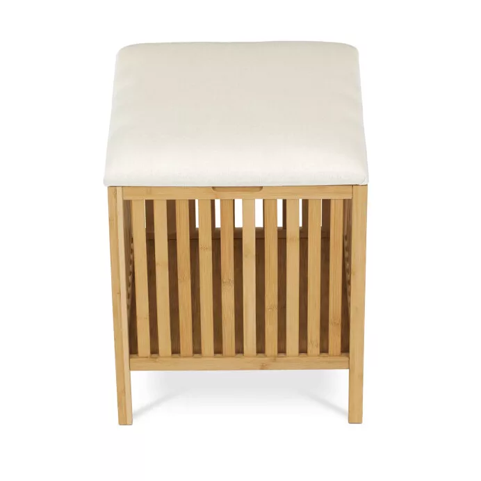 Hornú časť dopĺňa mäkký polstrovaný sedák v jemnej bielej farbe, ktorý je potiahnutý ľahko udržiavateľnou látkou. Kôš tak možno využiť nielen na ukladanie bielizne, ale aj ako taburet alebo doplnok do spálne či predsiene.