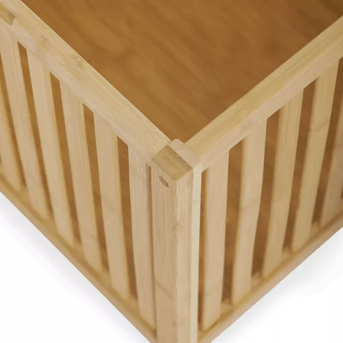Elegantný kôš na bielizeň z masívneho bambusu v prírodnom odtieni spája praktický úložný priestor s možnosťou pohodlného sedenia. Vďaka pevnej bambusovej konštrukcii tvorenej lamelami je kôš odolný, stabilný a zároveň zaisťuje prirodzenú cirkuláciu vzduchu vo vnútri.