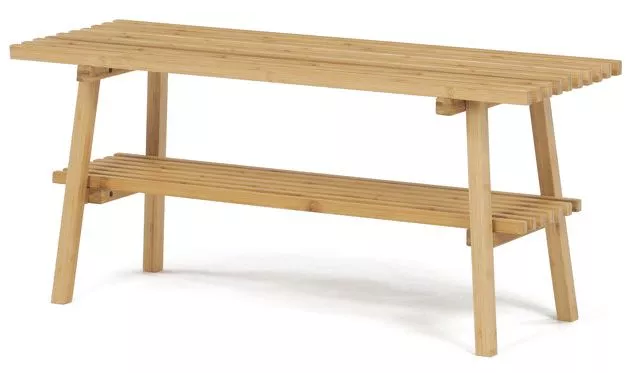 Elegantný botník z masívneho bambusu v prírodnom odtieni ponúka praktické a vzdušné riešenie na ukladanie obuvi v predsieni či šatni. Otvorená konštrukcia s jednou policou umožňuje ľahký prístup aj prehľad, zatiaľ čo bambusové lamely zaisťujú prirodzenú cirkuláciu vzduchu, ktorá pomáha udržať topánky suché a svieže.