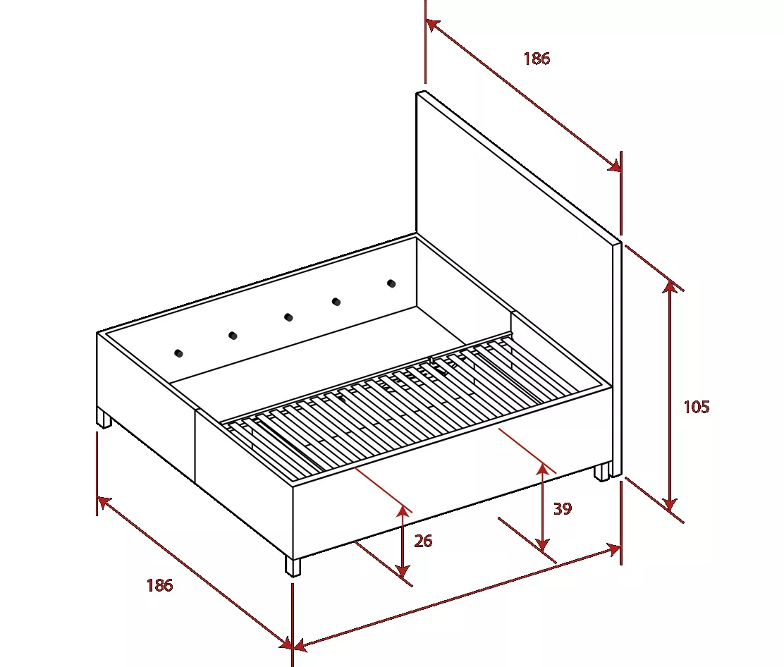 Posteľ je vhodná pre akýkoľvek typ matraca - výška zvoleného matraca zároveň určuje výslednú výšku ložnej plochy. Vysoké nožičky udržujú posteľ nad podlahou a umožňujú správnu cirkuláciu vzduchu pod posteľou, čím zároveň eliminujú pocit chladu či prievanu.