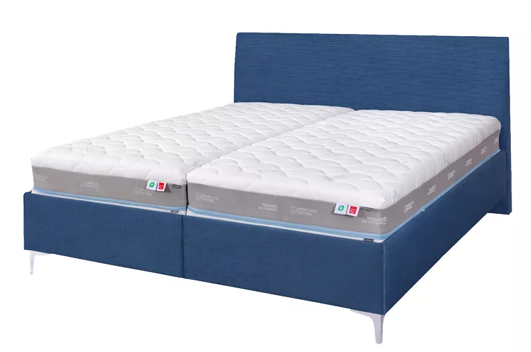Základňa je vybavená dvoma dizajnovými nožičkami a dvoma kovovými vnútornými spojovacími nožičkami, ktoré nie sú zvonku viditeľné. Oba boxy sú pevne priskrutkované, čo zabraňuje ich posunu. Poťahovú látku aj štýl čela si volíte podľa svojho vkusu, aby vzhľad postele ladil s interiérom spálne.