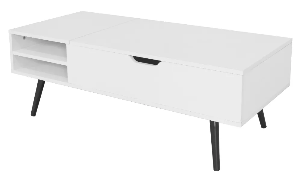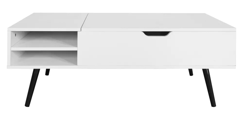 Konferenčný stolík ARALYN v elegantnom prevedení biela/čierna je praktickým a dizajnovým doplnkom modernej obývacej izby. Vďaka výškovo nastaviteľnej hornej doske ponúka nielen klasickú funkciu konferenčného stolíka, ale aj pohodlné využitie pri práci s notebookom, stolovaní alebo relaxácii.