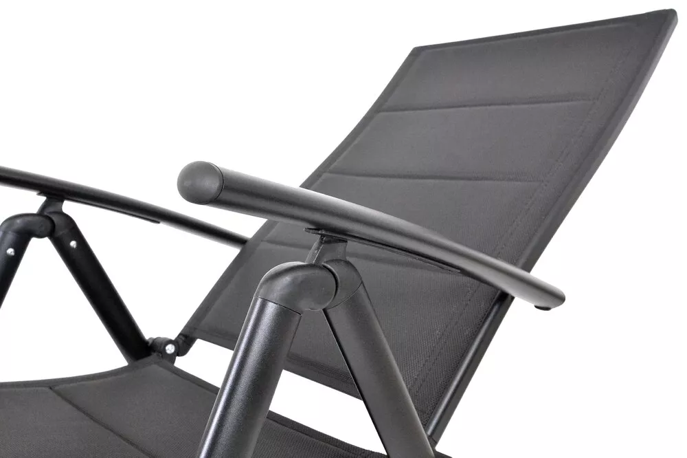Kreslo je vybavené polohovateľným operadlom so 7 polohami, vďaka ktorému si ľahko nastavíte ideálnu pozíciu na odpočinok, čítanie alebo slnenie. Sedák aj operadlo sú potiahnuté kvalitnou textíliou 2×1 s výplňou z rýchloschnúcej peny, ktorá zaisťuje vysoký komfort a umožňuje rýchle použitie aj po daždi.