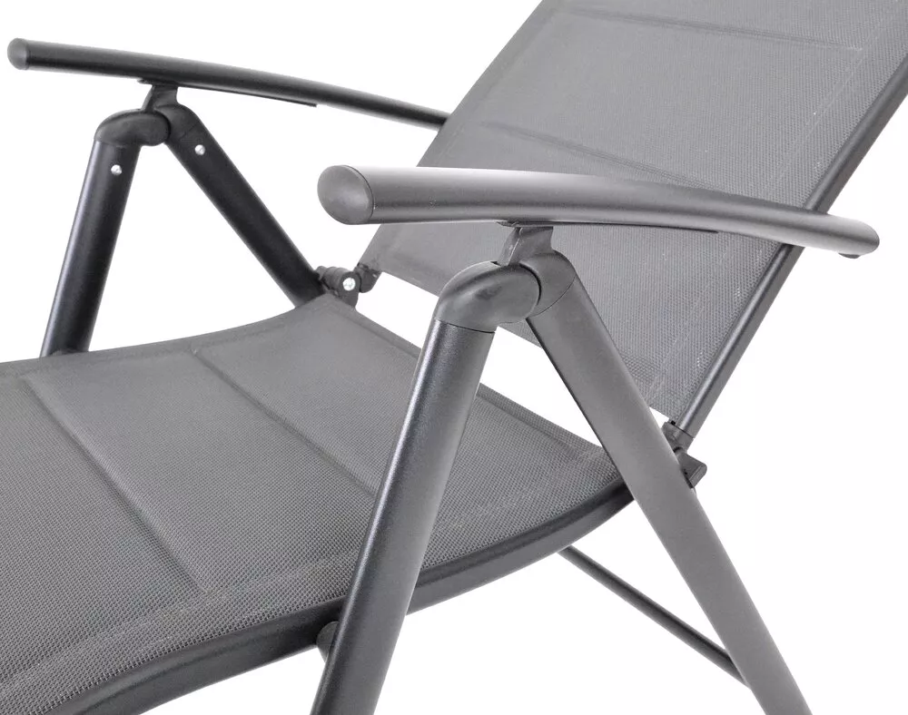 Ľahká, ale pevná hliníková konštrukcia s práškovým lakovaním je odolná voči korózii aj poveternostným vplyvom. Premyslené rozmery profilov zaisťujú stabilitu a dlhú životnosť pri zachovaní nízkej hmotnosti. Vďaka skladaciemu prevedeniu je kreslo ľahko prenosné a skladné mimo sezóny.
