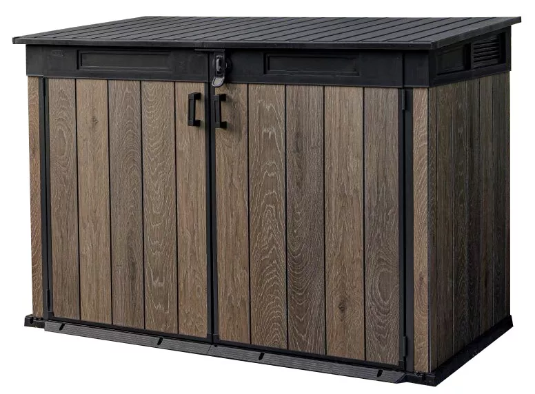 Elegantná a mimoriadne praktická skriňa SIGNATURE 2 020 l od značky Keter ponúka inteligentné riešenie na uskladnenie popolníc i ďalšieho záhradného vybavenia. Vďaka veľkorysému objemu 2 020 litrov umožňuje uložiť až dva popolnice s objemom 360 l alebo tri popolnice s objemom 240 l, a zároveň poslúži aj pre záhradné náradie, techniku či príslušenstvo.