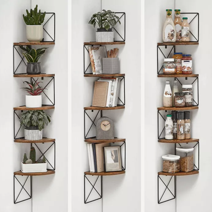 Praktická a dizajnová polička, ktorá premení nevyužitý roh na atraktívny úložný aj dekoračný prvok.