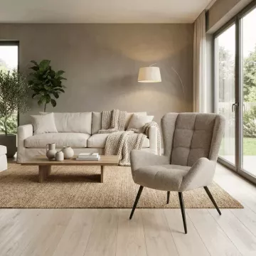 Elegantné kreslo typu ušiak v jemnom odtieni ponúka pohodlné posedenie aj štýlový doplnok interiéru. Vysoké polstrovanie sedadla a operadla zaisťuje komfort pri každodennom odpočinku, čítaní aj sledovaní televízie. Poťah z prémiovej látky je príjemný na dotyk a zároveň odolný pre bežné používanie. Klasický tvar ušiaka je doplnený modernou kovovou podnožou v čiernom mate, ktorá dodáva kreslu stabilitu a nadčasový vzhľad. Ergonomicky tvarované podrúčky podporujú pohodlné sedenie a správnu oporu paží.