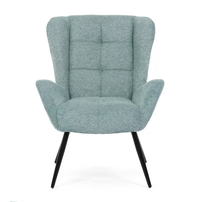 Elegantné kreslo typu ušiak v jemnom odtieni ponúka pohodlné posedenie aj štýlový doplnok interiéru. Vysoké polstrovanie sedadla a operadla zaisťuje komfort pri každodennom odpočinku, čítaní aj sledovaní televízie. Poťah z prémiovej látky je príjemný na dotyk a zároveň odolný pre bežné používanie. Klasický tvar ušiaka je doplnený modernou kovovou podnožou v čiernom mate, ktorá dodáva kreslu stabilitu a nadčasový vzhľad. Ergonomicky tvarované podrúčky podporujú pohodlné sedenie a správnu oporu paží.