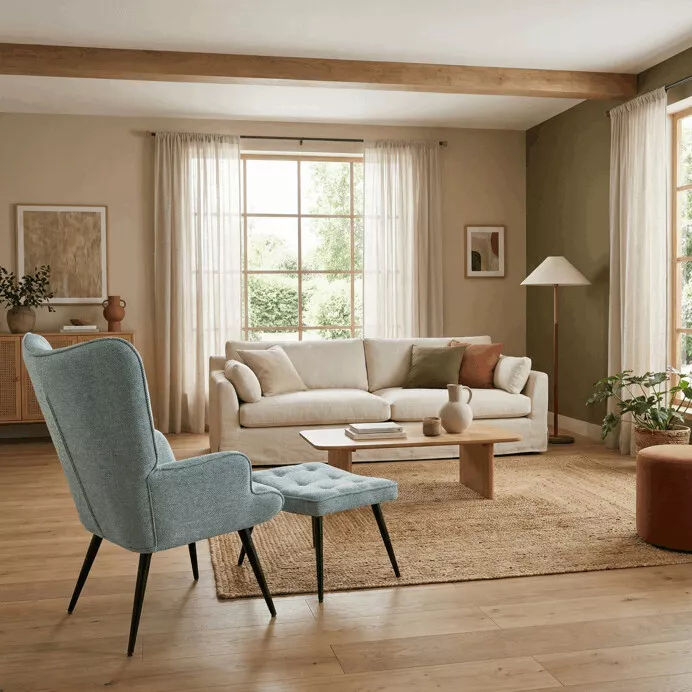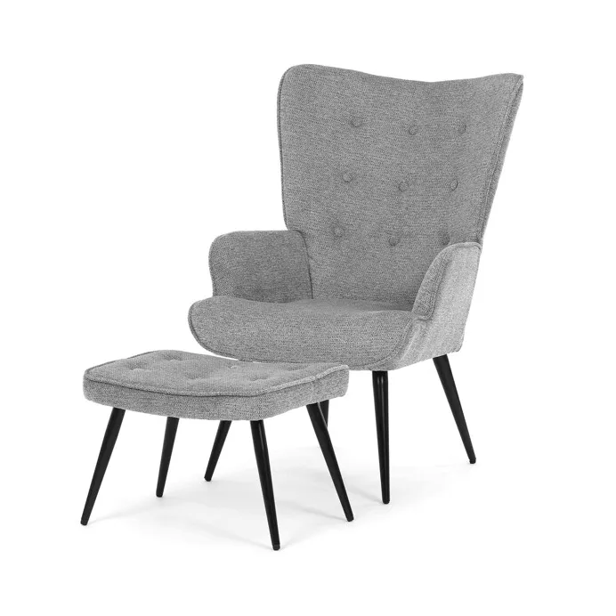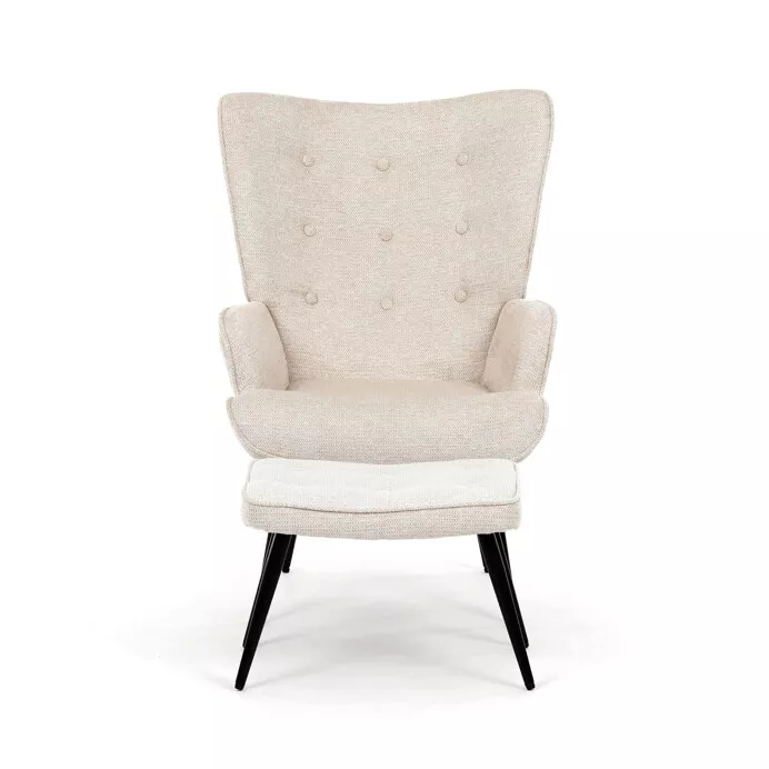Elegantné relaxačné kreslo s podnožkou ponúka ideálne spojenie pohodlia, funkčnosti a nadčasového designu. Čalúnenie z vodoodpudivej prémiovej látky uľahčuje údržbu a zvyšuje odolnosť pri každodennom používaní. Ergonomicky tvarované operadlo s integrovanými podrúčkami poskytuje príjemnú oporu pri odpočinku, čítaní aj relaxácii. Súčasťou zostavy je samostatný taburet, ktorý umožňuje pohodlné podoprenie nôh a zvyšuje celkový komfort sedenia. Jemné prešitie a zaoblené línie dodávajú kreslu elegantný vzhľad vhodný do moderných aj klasických interiérov.