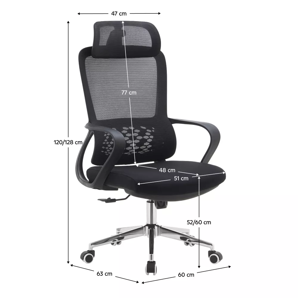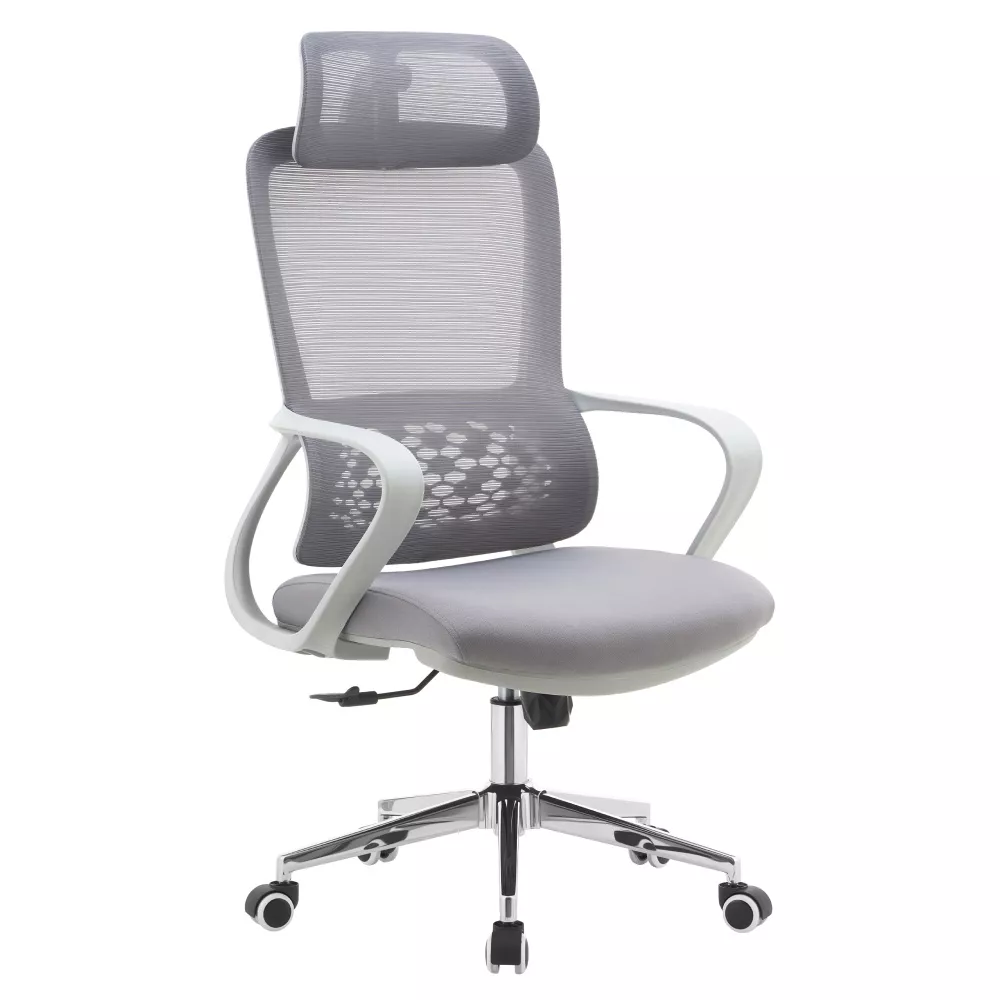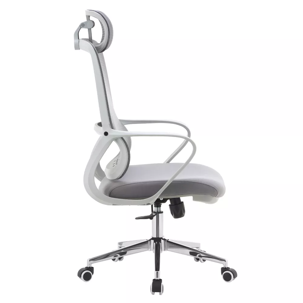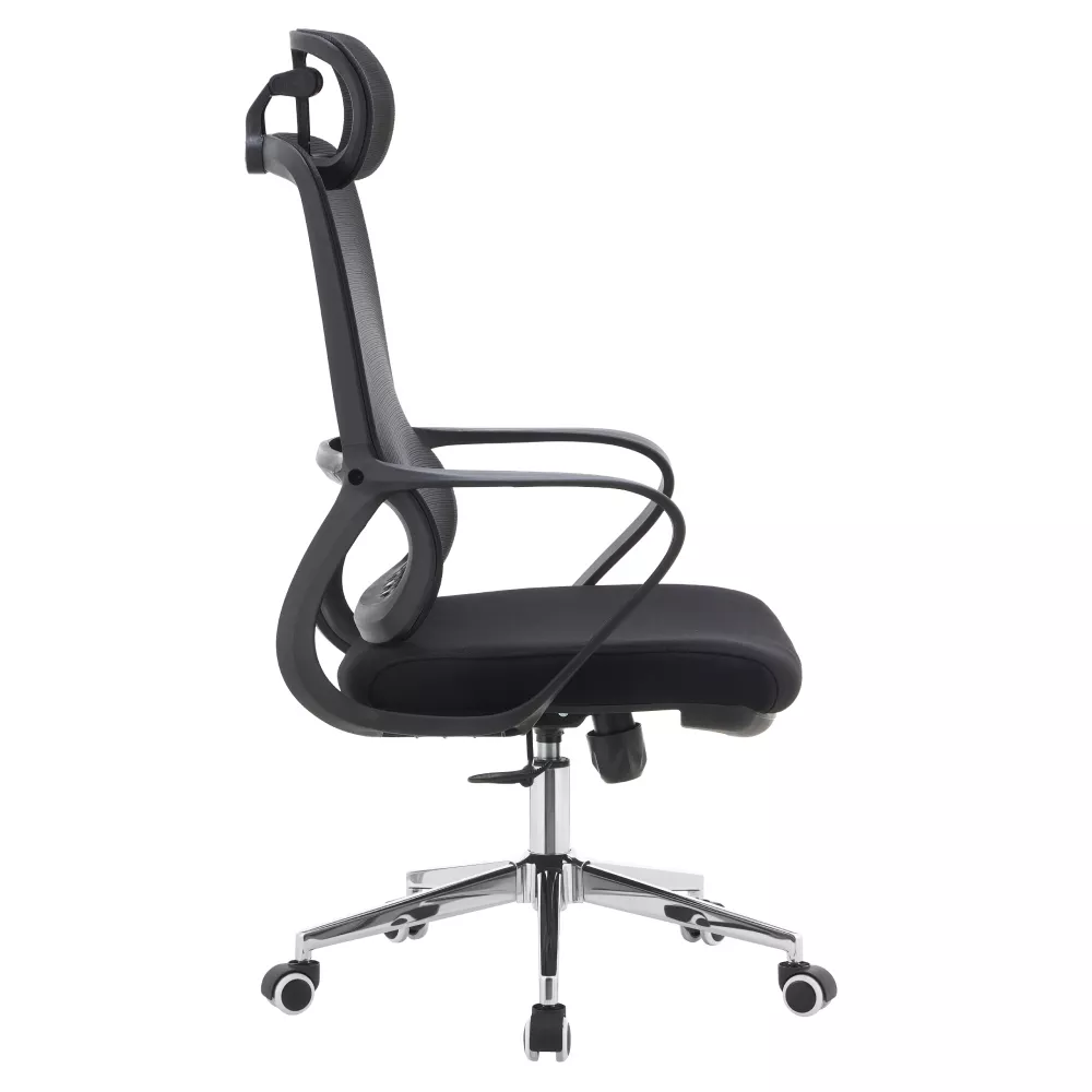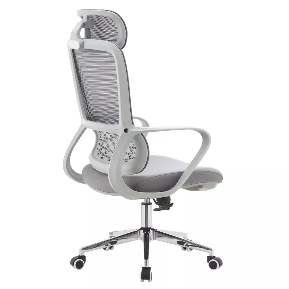Priedušná sieťovina v kombinácii s látkou zaisťuje dobrú cirkuláciu vzduchu, zatiaľ čo chrómová podstava dodáva kreslu elegantný vzhľad vhodný do moderných kancelárií. Výšku sedu je možné ľahko prispôsobiť postave užívateľa, nechýba ani hojdací mechanizmus na krátke uvoľnenie počas práce. Univerzálne kolieska umožňujú plynulý pohyb po tvrdých aj mäkkých podlahách.