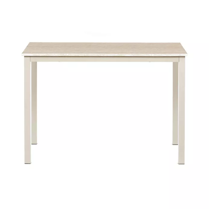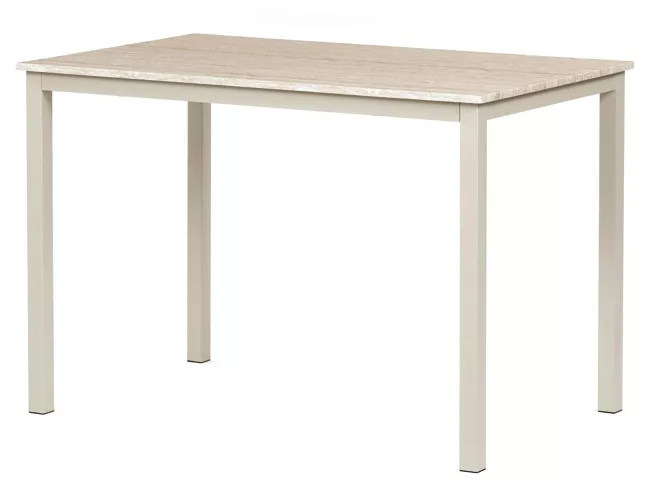 Obdĺžniková stolová doska z matnej MDF pôsobí nadčasovo a ľahko sa kombinuje s rôznymi typmi interiérov. Subtílna kovová konštrukcia dodáva stolu ľahkosť bez toho, aby utrpela jeho stabilita. Vďaka neutrálnemu dizajnu je možné stôl využiť nielen ako jedálenský pre štyri osoby , ale aj ako písací či pracovný stôl pre ľahšie činnosti.