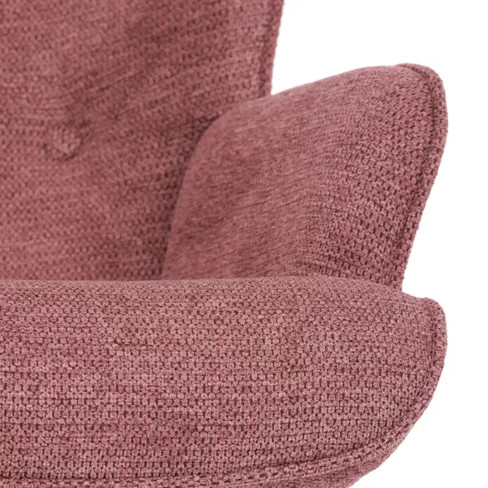 Kreslo je potiahnuté prémiovou látkou zo 100% polyesteru, ktorá je príjemná na dotyk a zároveň ľahko udržiavateľná. Odolnosť poťahu potvrdzuje hodnota 36 000 cyklov Martindale. Stabilitu a dlhú životnosť zaisťuje konštrukcia z kombinácie čierneho kovu a masívneho kaučukovníka v prírodnom odtieni.