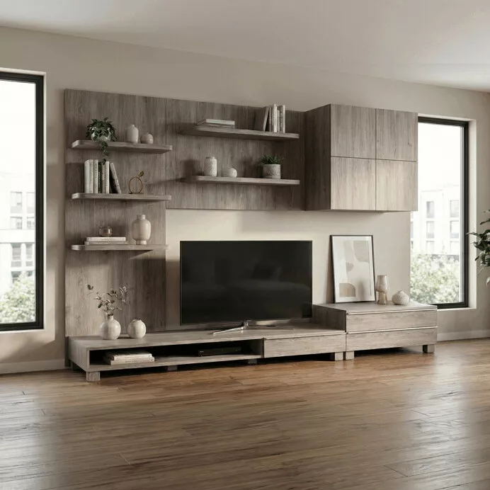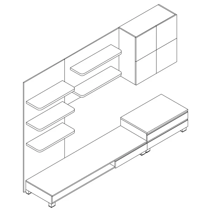 Praktické police a skrinky poskytujú kombináciu otvoreného aj uzavretého úložného priestoru, ktorý je nielen funkčný, ale zároveň esteticky vyvážený. Stena je dodávaná v demontovanom prevedení pre ľahšiu prepravu a následnú montáž.