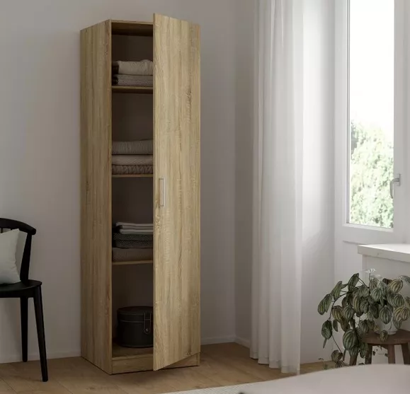 Praktická jednodverová skriňa Sid v dekore duba sonoma tmavý je ideálnou voľbou, keď potrebujete úložný priestor navyše a nechcete, aby nábytok v miestnosti pôsobil ťažko. Vďaka šírke okolo 49 cm sa zmestí aj do užších priestorov. Dizajn je jednoduchý a nadčasový, takže ju ľahko zladíte s moderným aj klasickým interiérom.