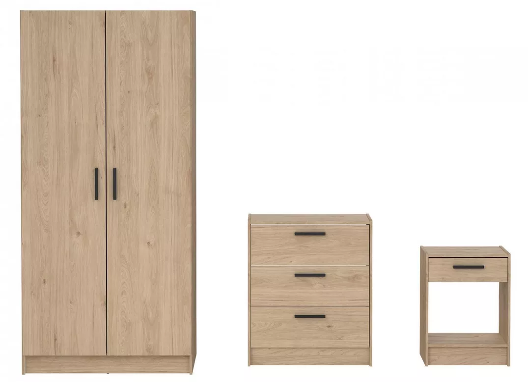 Zostava Start 077 je praktické riešenie pre spálňu, študentskú izbu i menší byt, kde chcete zladený nábytok v jednom štýle. Kombinuje šatníkovú skriňu, komodu a nočný stolík do uceleného setu, ktorý pôsobí čisto, moderne a zároveň nepreplácane. V praxi oceníte hlavne to, že základné úložné potreby vyriešite jedným nákupom? oblečenie do skrine, drobnosti do komody a všetko potrebné na noc po ruke v stolíku.