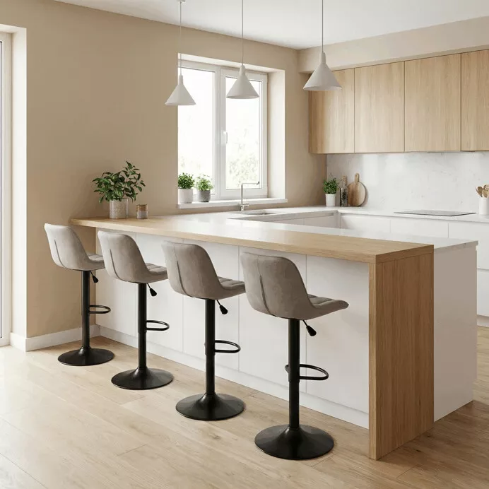 Barová stolička AUB-V3066 je ideálnou voľbou pre moderné kuchyne, jedálne aj domáce bary. Kombinuje elegantný vzhľad s praktickými funkciami, ktoré zaisťujú pohodlné a flexibilné sedenie. Skvele sa hodí k barovým pultom aj kuchynským ostrovčekom.