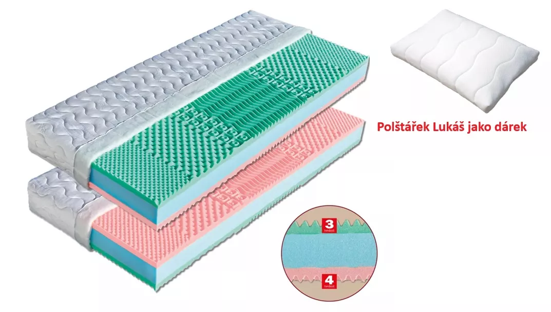 - tvrdosť: strana 3 (tvrdá) / strana 4 (extra tvrdá)