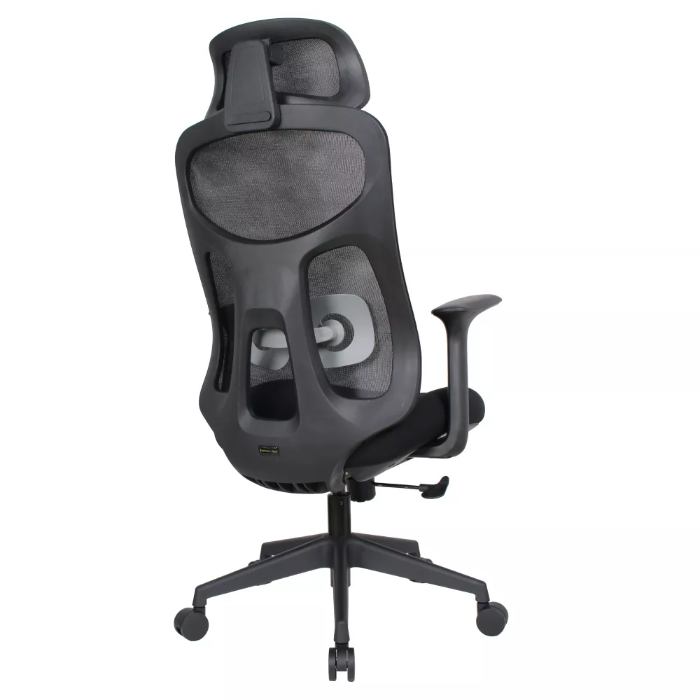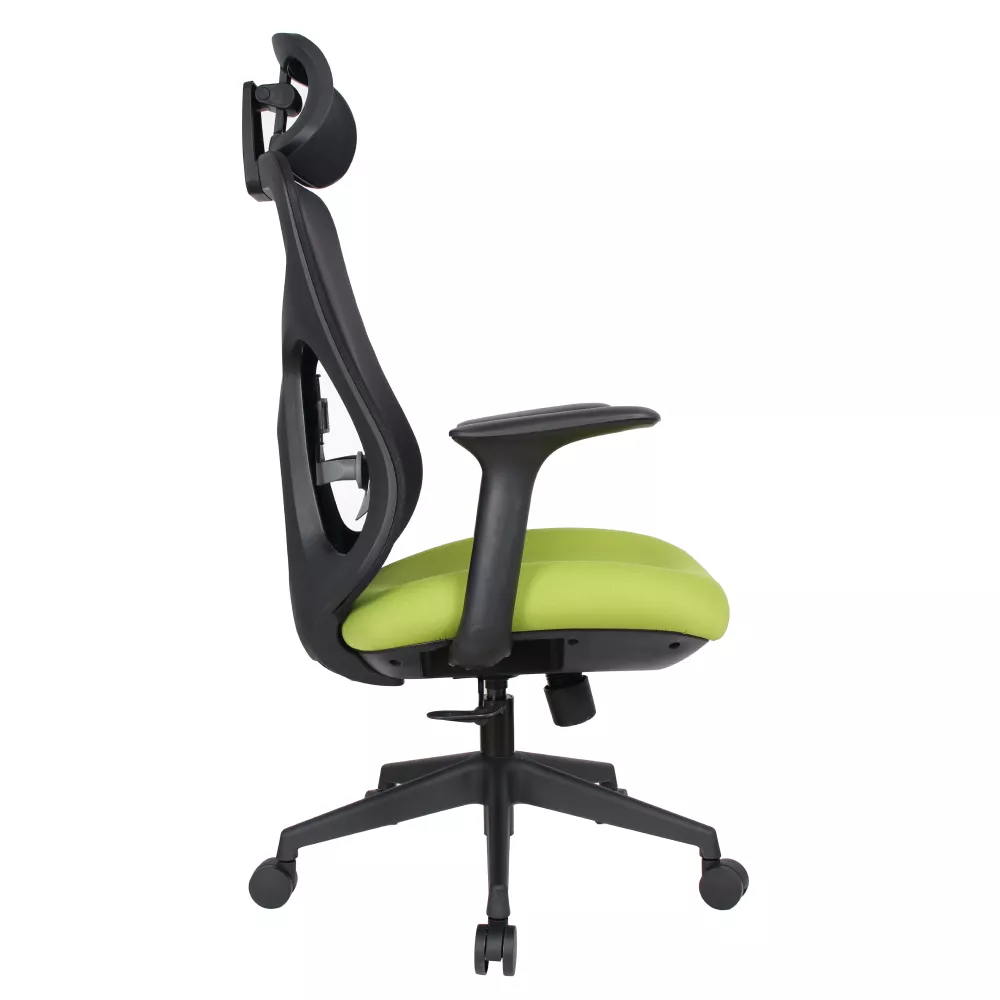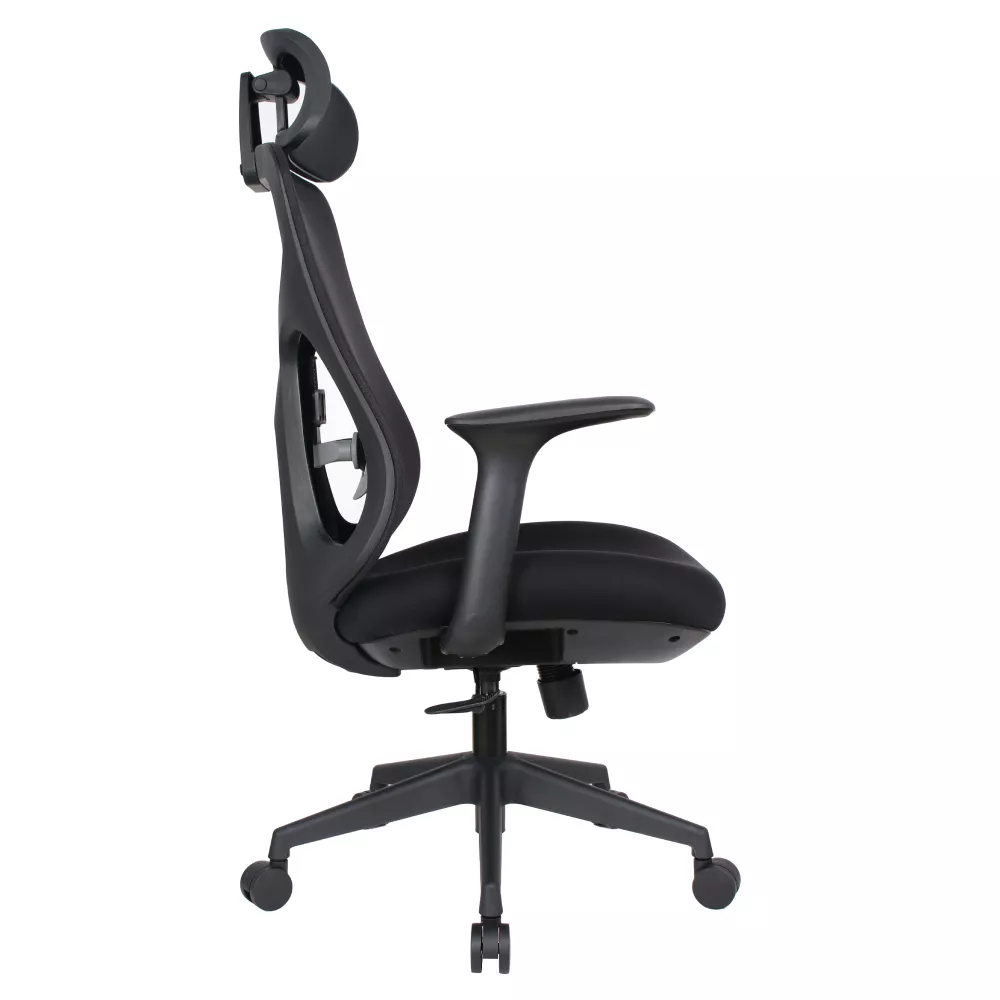 Stolička je vybavená nastaviteľnou opierkou hlavy, ktorú si ľahko prispôsobíte svojej výške, a ergonomickou bedrovou opierkou s možnosťou nastavenia výšky pre ideálnu podporu spodnej časti chrbta. Tvarované sedadlo zaisťuje pohodlné a stabilné sedenie počas celého dňa. Opierky na ruky prispievajú k uvoľneniu ramien a paží.