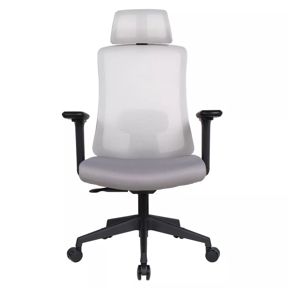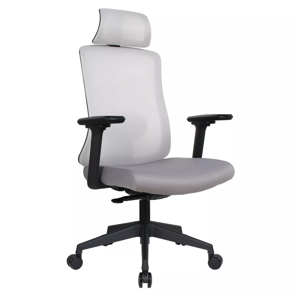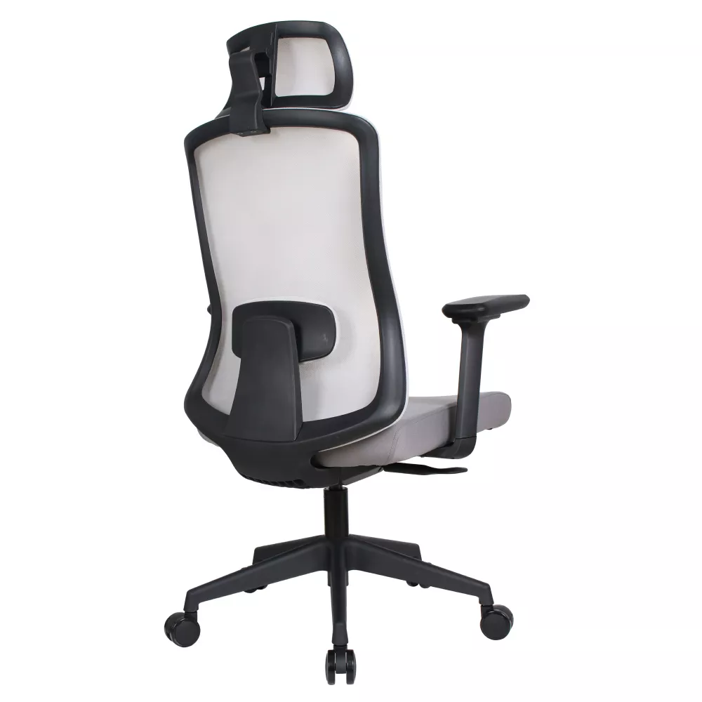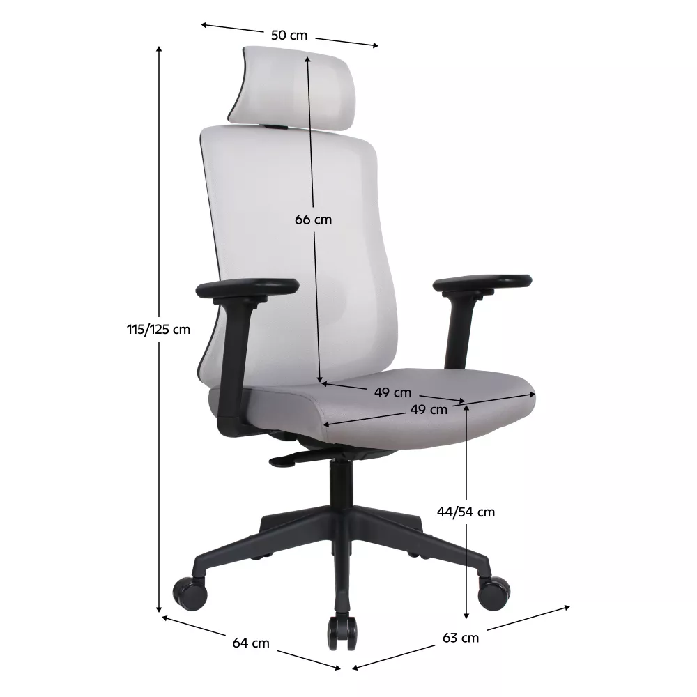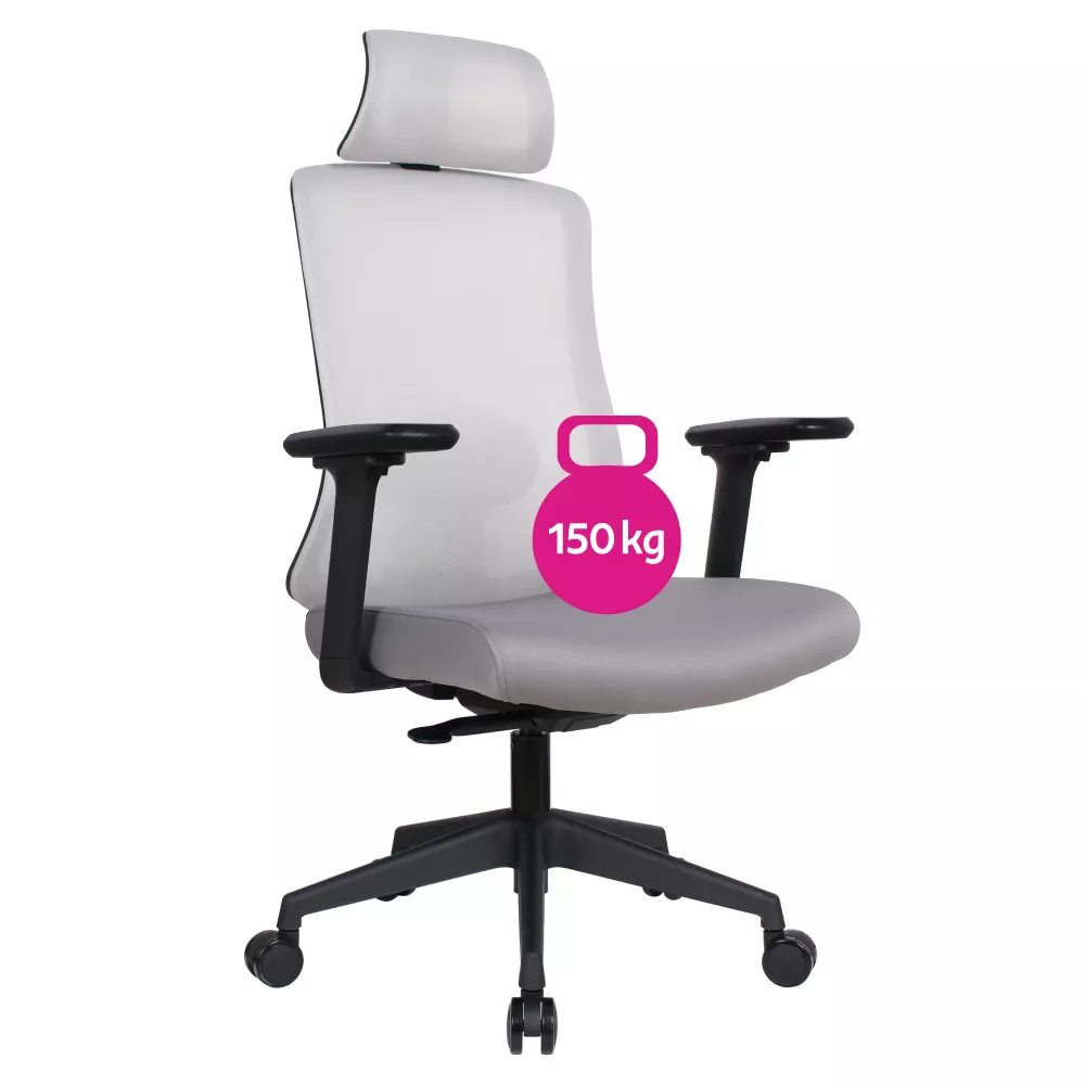 Sedák aj operadlo sú vyrobené z priedušnej sieťoviny v kombinácii s plastom. Sieťovina zaisťuje optimálnu cirkuláciu vzduchu a obmedzuje prehrievanie. Oderuodolnosť textílie dosahuje 90 000 cyklov podľa testu Martindale, čo zaručuje vysokú životnosť aj pri každodennom používaní. Elegantné šedé prevedenie s čiernym rámom pôsobí moderne a profesionálne.