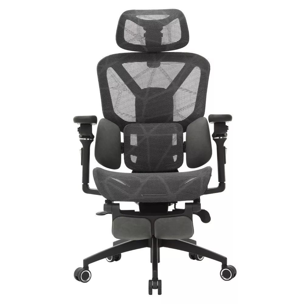 Dizajn spája vzdušnú sieťovinu, odolnú ekokoži (na podnoži a častiach bedrovej opierky) a pevný plast. Elegantná kombinácia tmavo šedej a čiernej farby pôsobí nadčasovo a ľahko zapadne do kancelárie aj študentskej izby.