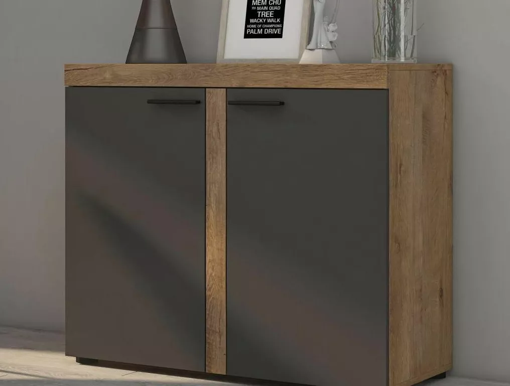 Komoda Rizo 2D je praktický a nadčasový kus nábytku, ktorý skvele doplní bytovú stenu, ale rovnako dobre obstojí aj samostatne. Vďaka šírke 97 cm ponúkne príjemne veľký úložný priestor bez toho, aby v miestnosti pôsobila ťažko. Za dvoma dvierkami sa nachádzajú dve police, takže si ľahko usporiadate veci prehľadne? od dokumentov cez textil až po domáce drobnosti.
