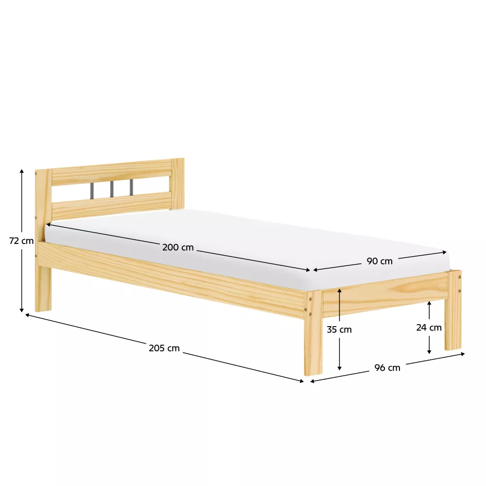 Jednoduché línie v prírodnej farbe podčiarkujú prirodzenú kresbu dreva a umožňujú ľahké kombinovanie s ďalším nábytkom. Konštrukcia s hrúbkou 2,6 cm zaisťuje stabilitu a dlhú životnosť. Posteľ stojí na nožičkách s výškou 35 cm, ktoré jej dodávajú ľahkosť a zároveň uľahčujú upratovanie pod lôžkom.