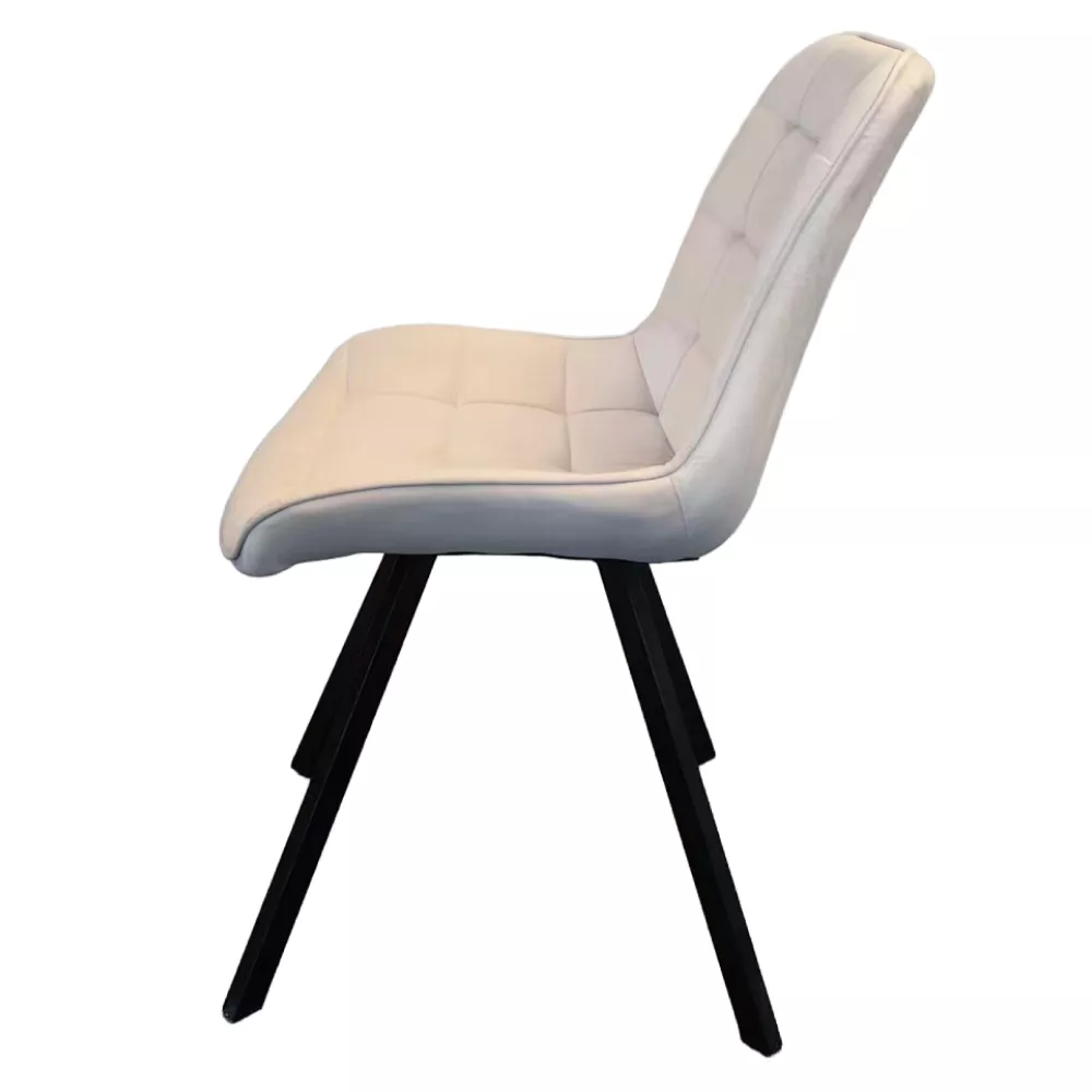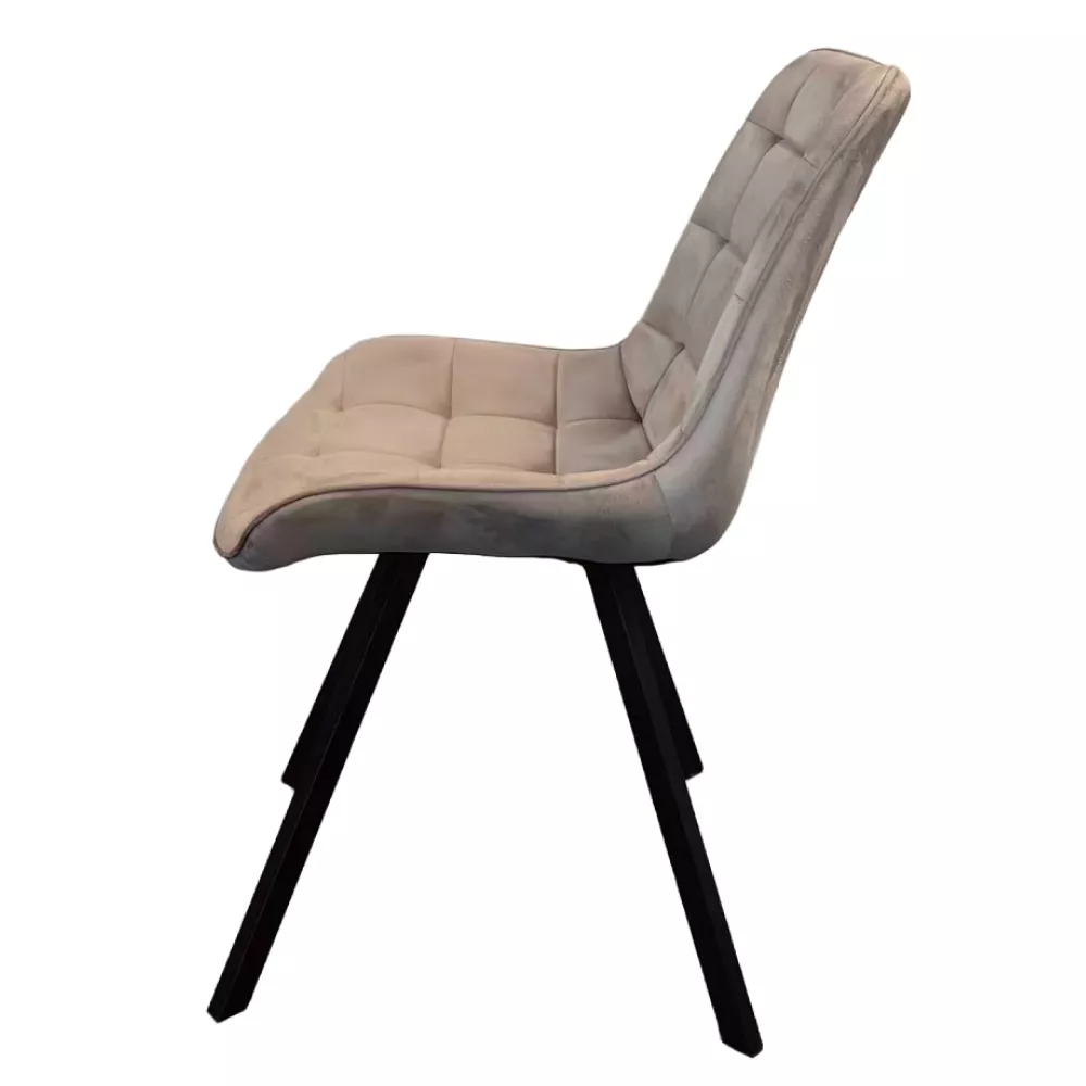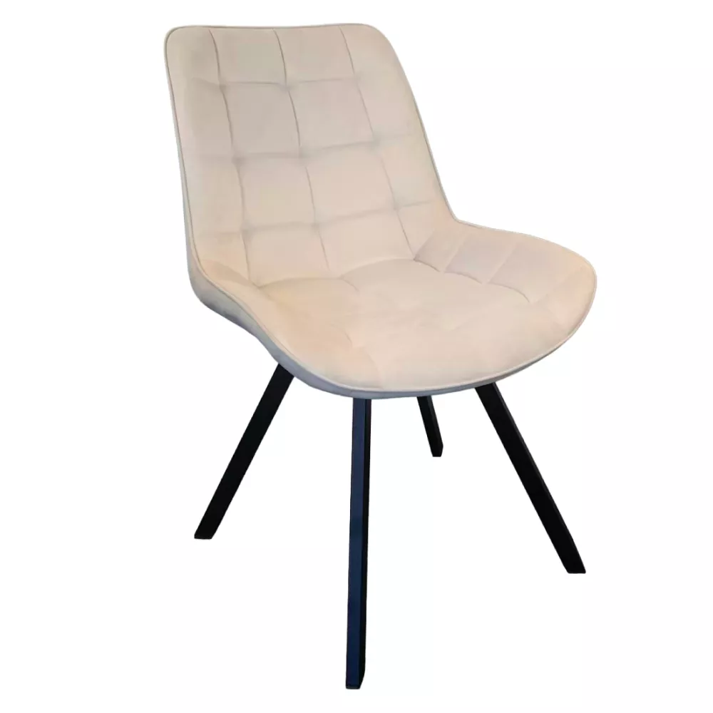 Jedálenská stolička SAMIRA spája moderný dizajn, dekoratívne prešívanie a vysoký komfort sedenia . Vďaka elegantnej kombinácii béžovej Velvet látky a čiernych kovových nôh sa stane výrazným, ale zároveň nadčasovým prvkom každej jedálne, kuchyne aj obývacieho priestoru.