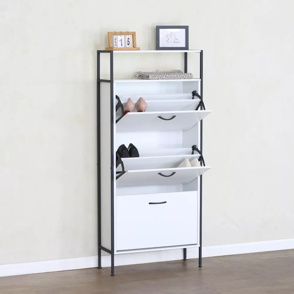 TREDIS disponuje tromi výklopnými šuplíkmi, pričom každý je rozdelený na dve priehradky. Ponúka tak dostatok miesta na rôzne typy obuvi - od elegantných podpätkov až po každodenné tenisky. Výklopný mechanizmus umožňuje ľahký prístup a pomáha udržať predsieň upravenú a bez chaosu.