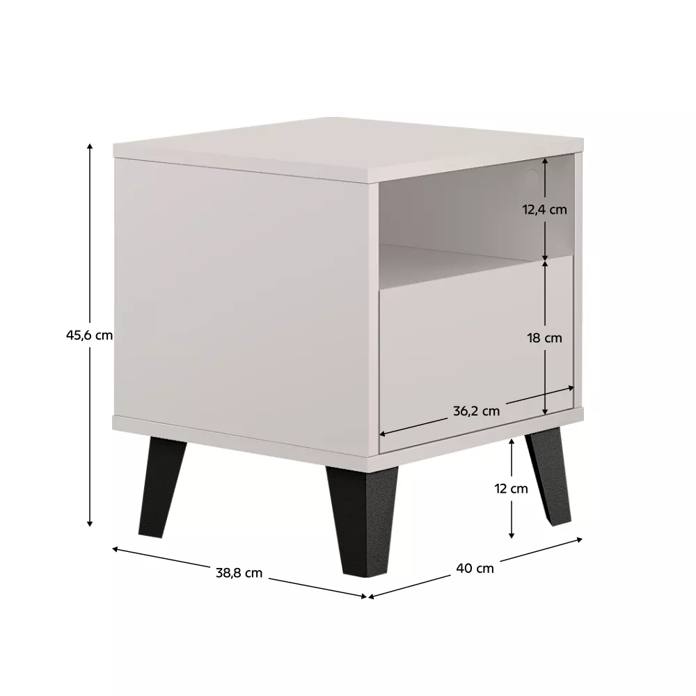 BOGAN NEW 1S ponúka úložný priestor v podobe jedného šuplíka a otvorenej police. Zásuvka je ideálna na uloženie drobností, ktoré chcete mať po ruke, ale zároveň skryté. Otvorený priestor poslúži napríklad na knihu, telefón, okuliare alebo dekoráciu. Bezúchytkové prevedenie podčiarkuje čistý a minimalistický vzhľad.