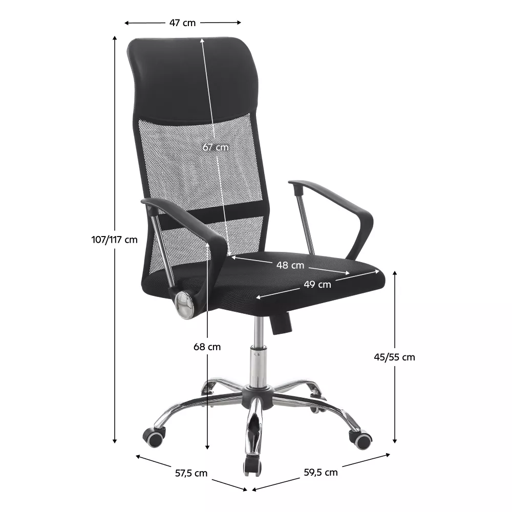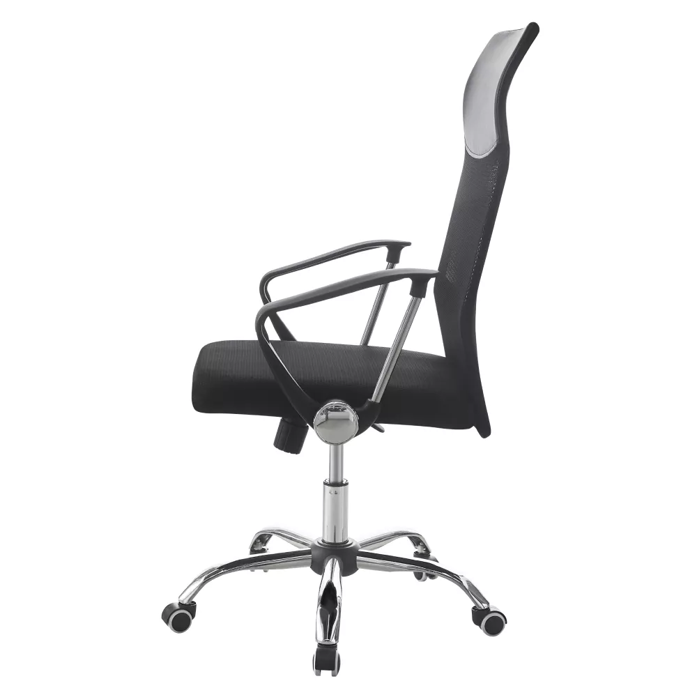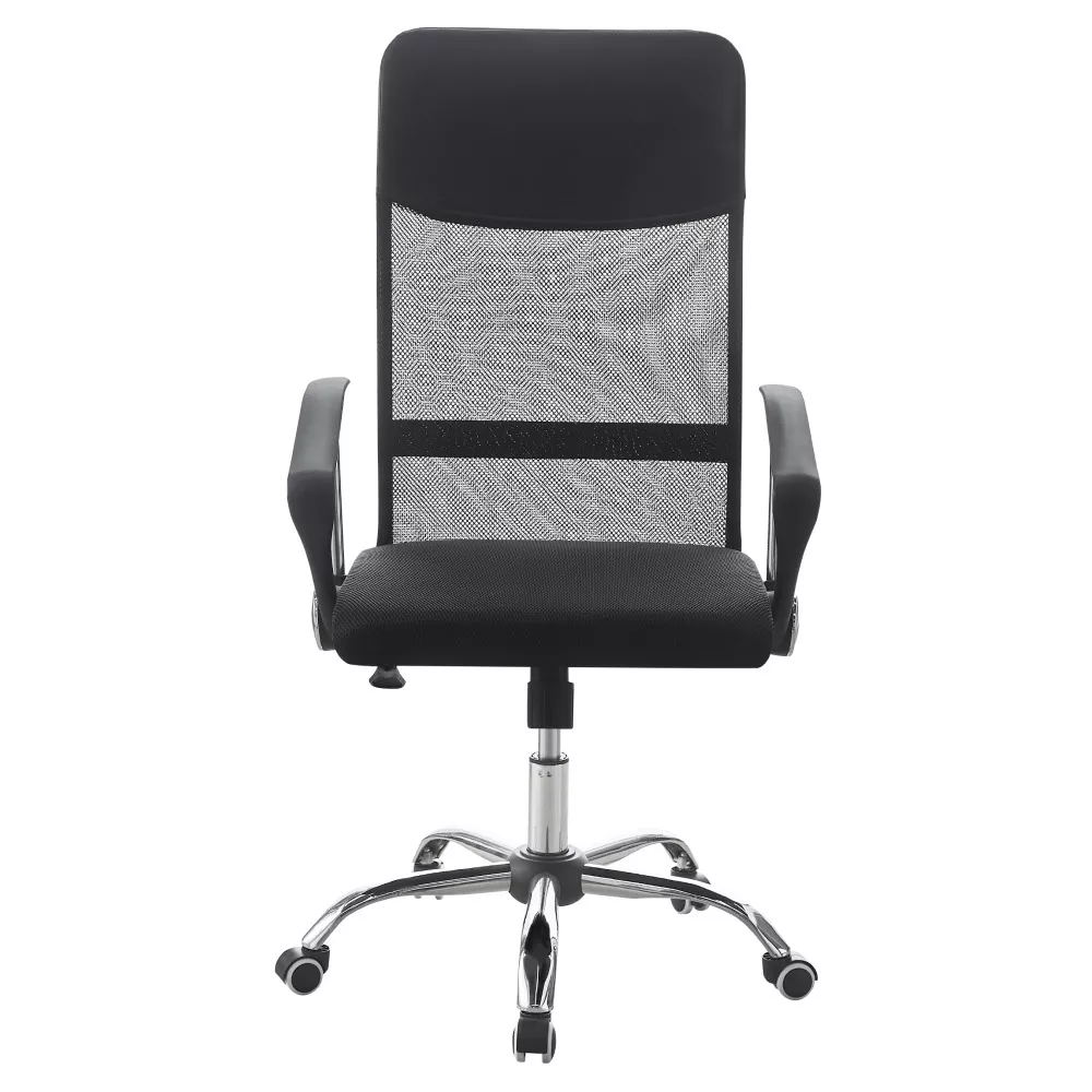Sedák a operadlo sú čalúnené kombináciou kvalitnej ekokože a priedušnej sieťoviny . Táto kombinácia zaisťuje komfort pri sedení aj dostatočné odvetrávanie počas dlhšej práce. Kovová chrómovaná ružica pod sedadlom dodáva kreslu stabilitu a vizuálnu ľahkosť, plastové podrúčky potom pohodlnú oporu rúk.