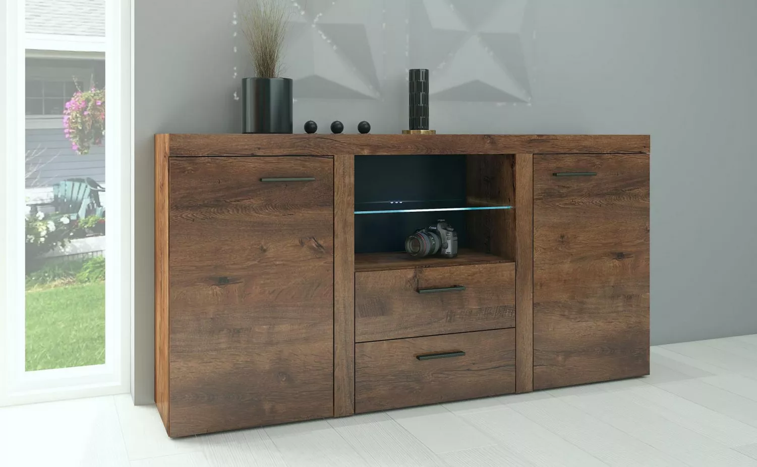 Štýlová komoda Rizo 2D2S v dekore dub lefkas zaujme svojim prírodným ...