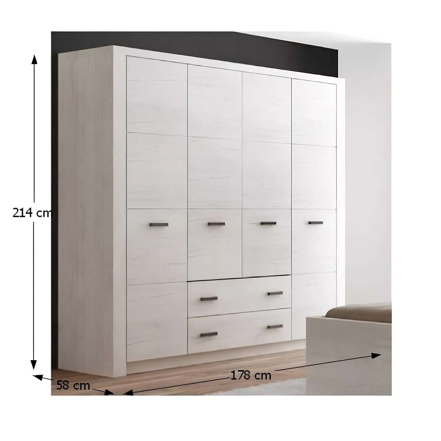 Vďaka štyrom dverám poskytuje skriňa dostatok priestoru na organizáciu šatníka celej domácnosti a zároveň si zachováva moderný a elegantný vzhľad.
