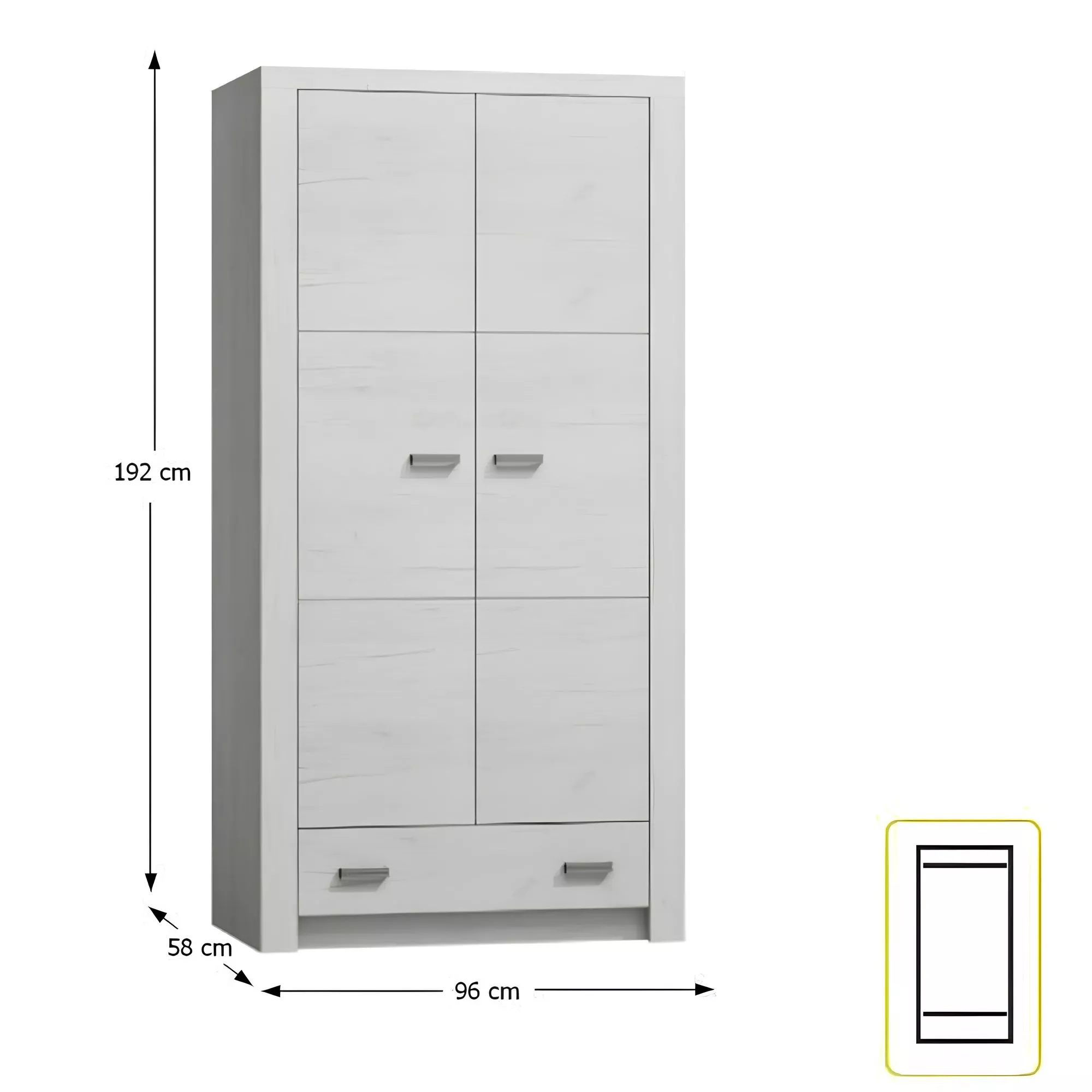 Šatníková skriňa INFINITY 01 v dekore jaseň svetlý ponúka praktický úložný priestor a moderný dizajn, ktorý sa hodí do spálne, detskej i študentskej izby. Svetlý drevený dekor pôsobí prirodzene a ľahko sa kombinuje s ďalším nábytkom v interiéri.