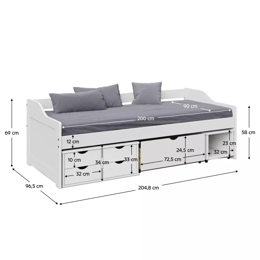 - plocha na spanie: 90 × 200 cm