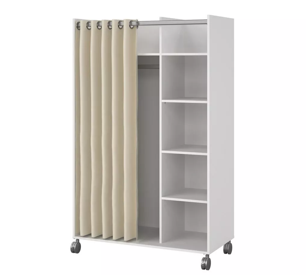 Skriňa Harmony 119 je praktická mobilná skriňa , ktorá ponúka originálne riešenie úložného priestoru vďaka textilnému závesu namiesto klasických dverí. Vyzerá ľahko, v miestnosti nepôsobí robustne a zároveň umožní rýchly prístup k uloženým veciam. Vďaka kolieskam ju navyše ľahko presuniete podľa potreby ? ideálna do detskej a študentskej izby, predsiene, kancelárie i domácej pracovne.
