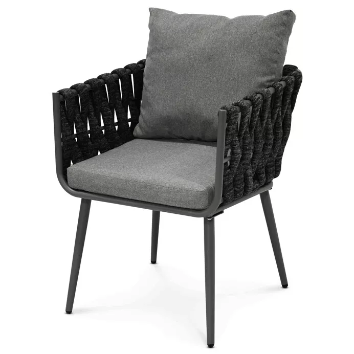 Otvorený, ľahko prepletaný rám pôsobí vzdušne a zároveň podporuje cirkuláciu vzduchu, čo oceníte predovšetkým v teplých dňoch. Polstrovaný sedák aj operadlo zaisťujú vyšší komfort pri sedení, zatiaľ čo ergonomický tvar podporuje prirodzené držanie tela. Kovová konštrukcia je odolná voči vonkajším podmienkam a zaisťuje dlhú životnosť.