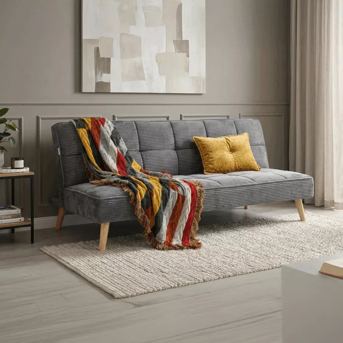 Poťah je vyrobený z príjemnej látky s jemnou rebrovanou štruktúrou, ktorá pripomína menčestrové prevedenie. Povrch je mäkký na dotyk a zároveň odolný pri každodennom používaní. Výplň z PU peny zaisťuje pohodlné sedenie aj príjemný odpočinok.