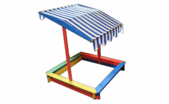Drevené detské pieskovisko so strieškou vo farebnom prevedení. Strieška je vyrobená z nepremokavého materiálu a zároveň slúži ako tienidlo pred slnkom. Konštrukcia je vyrobená z borovicového dreva (certifikácia FSC)