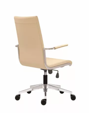 Moderná čalúnená pracovná stolička 1920 Alex Alu s opierkami rúk, hojdacím mechanizmom s aretáciou v základnej polohe a nastaviteľnou silou protiváhy. Prešívané čalúnenie pre zvýraznenie elegantného tvaru.