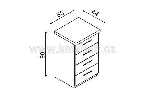 Táto praktická komoda z rady Ráchel má 4 malé zásuvky, ideálne na drobnosti. Vyrába sa v rozmeroch 44x53x90 cm.