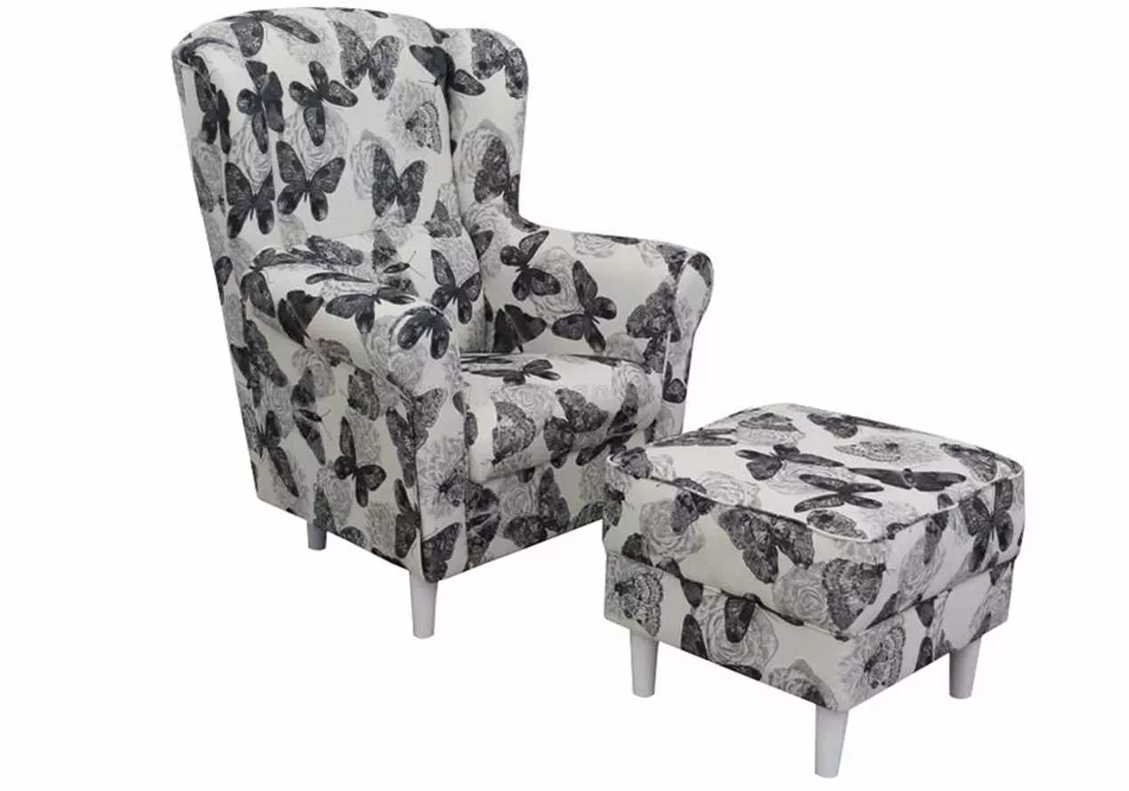 Pohodlné dizajnové kreslo - ušiak Astrid s taburetom. Dodajte ...